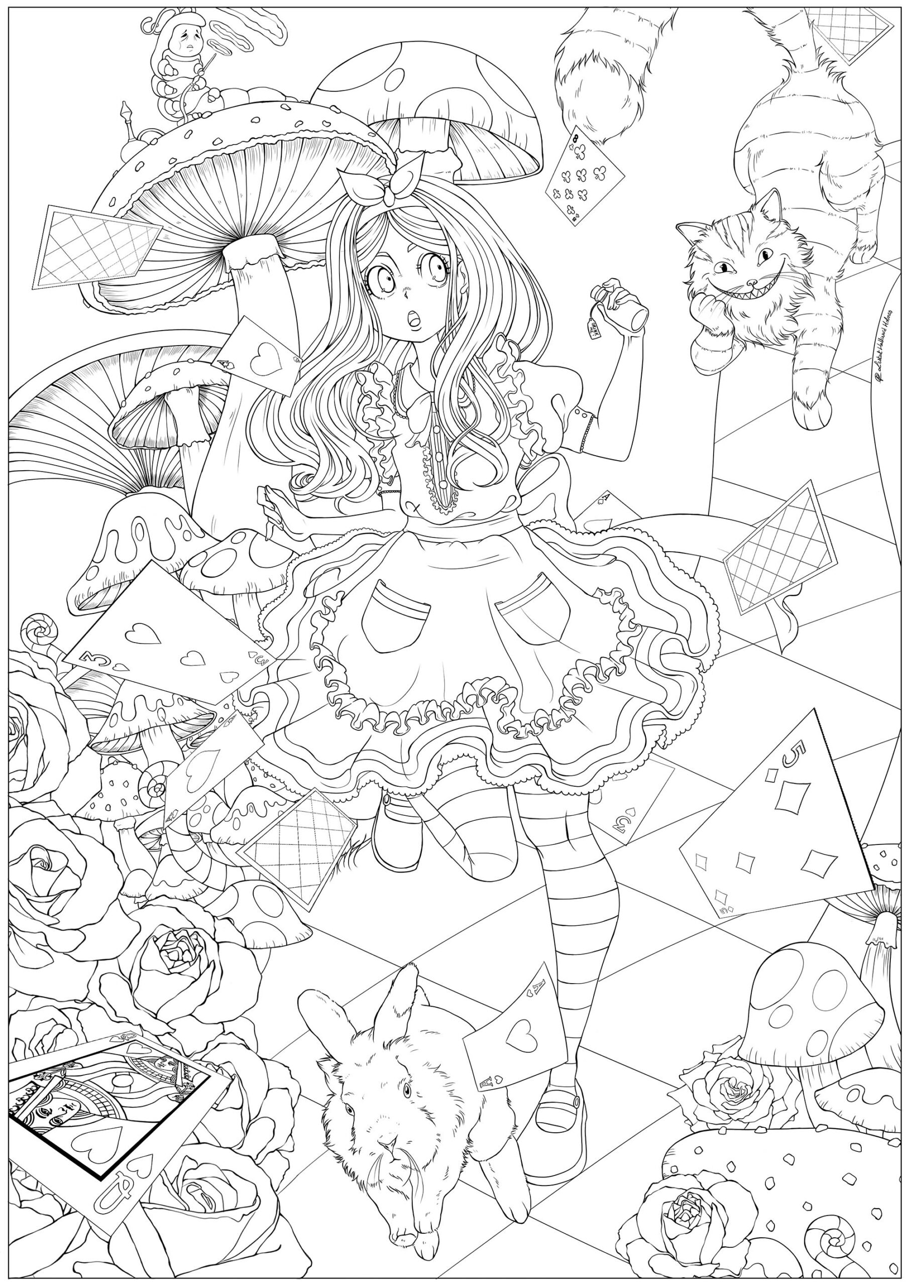 Share your completed masterpiece with friends and family or keep it as a cherished keepsake. Whether you choose to frame it, gift it, or simply admire it for yourself, this Alice in Wonderland psychedelic coloring page is sure to bring joy and creativity into your life. So grab your favorite coloring tools and let the adventure begin!