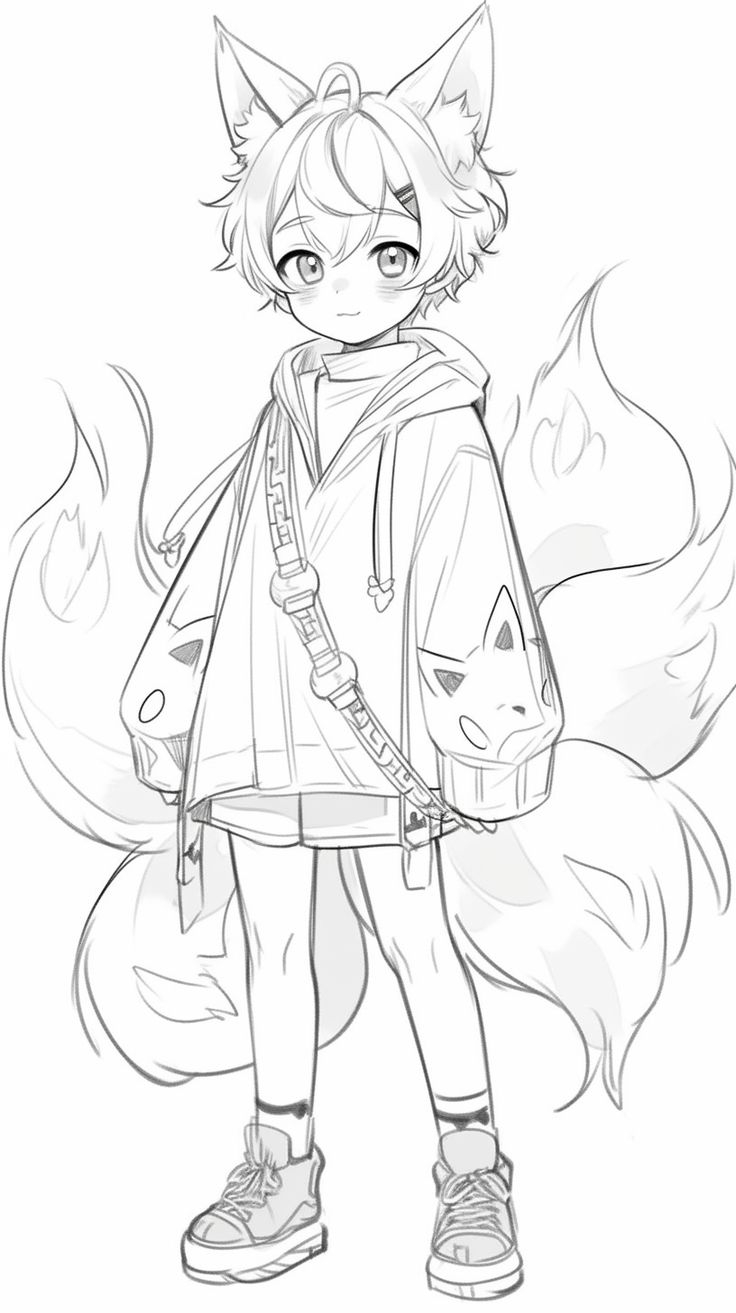 Anime And Manga Drawing Tutorial Kitsune Cute Anime Boy With Fox Ears And Fox Tails Cat Boy