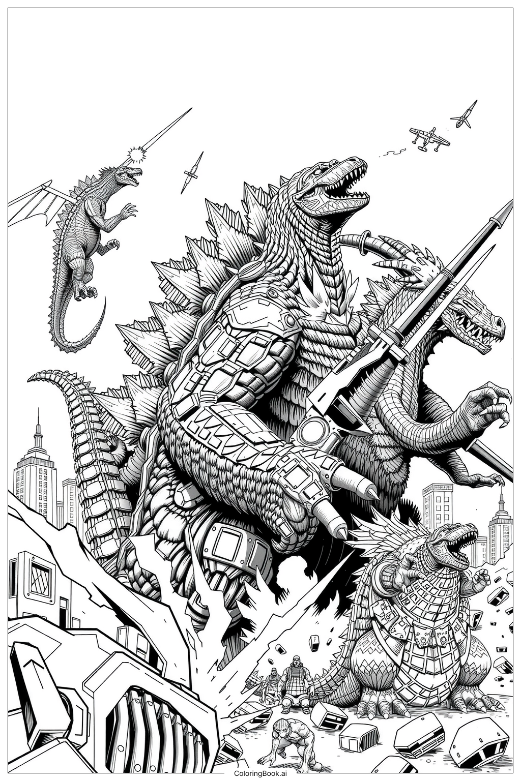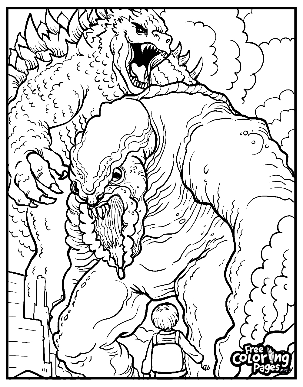 Godzilla Multiple Kaiju War 2 Coloring Page Free PDF PNG Printable