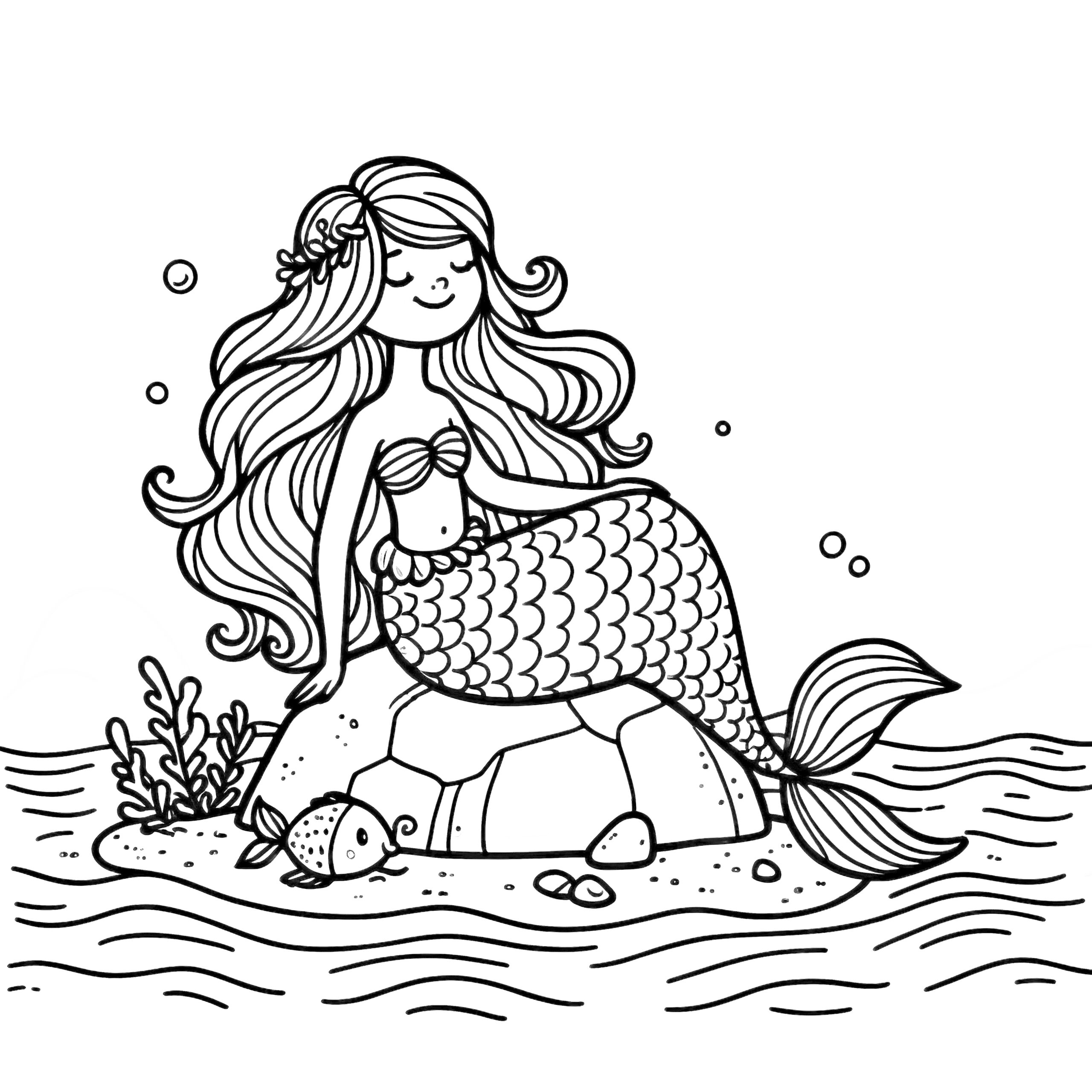 Meerjungfrau Op Rots Kleurplaat